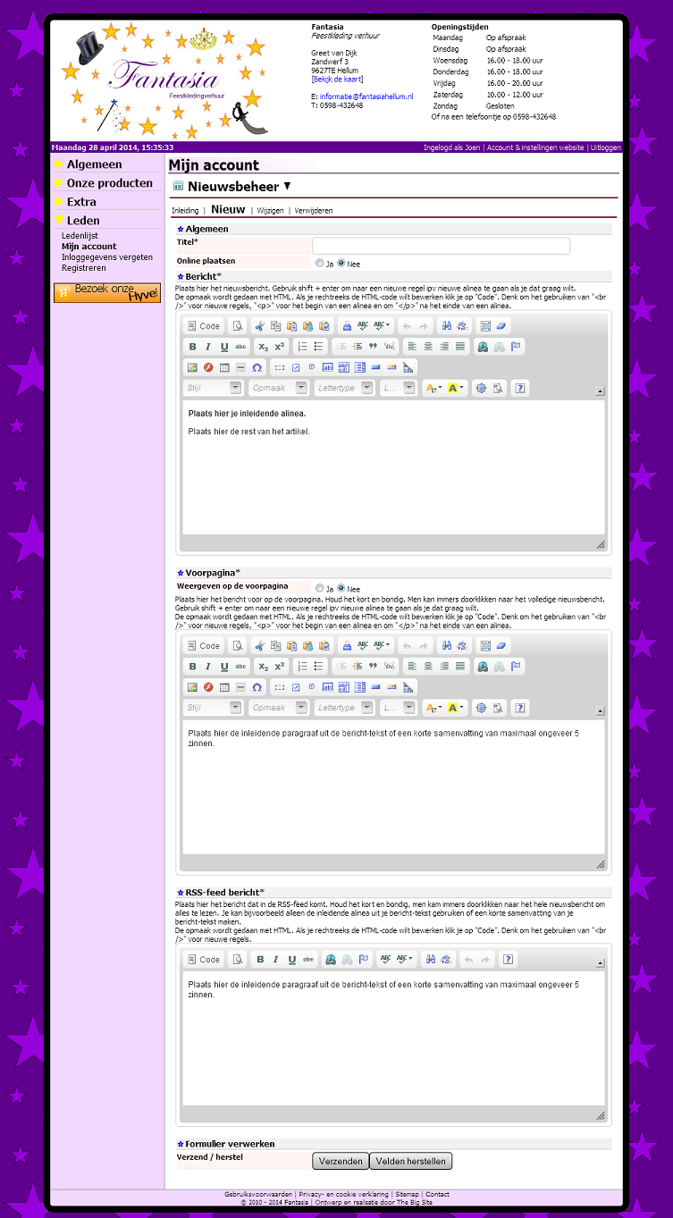 Deze website vind ik zelf 1 van de mooiste websites als het om doelgroepen-websites gaat. De doelgroep was oorspronkelijk namelijk feestkleding verhuur voor kinderen, maar tegenwoordig verhuurt de opdrachtgeefster ook feestkleding voor volwassenen (ook met een maatje meer).