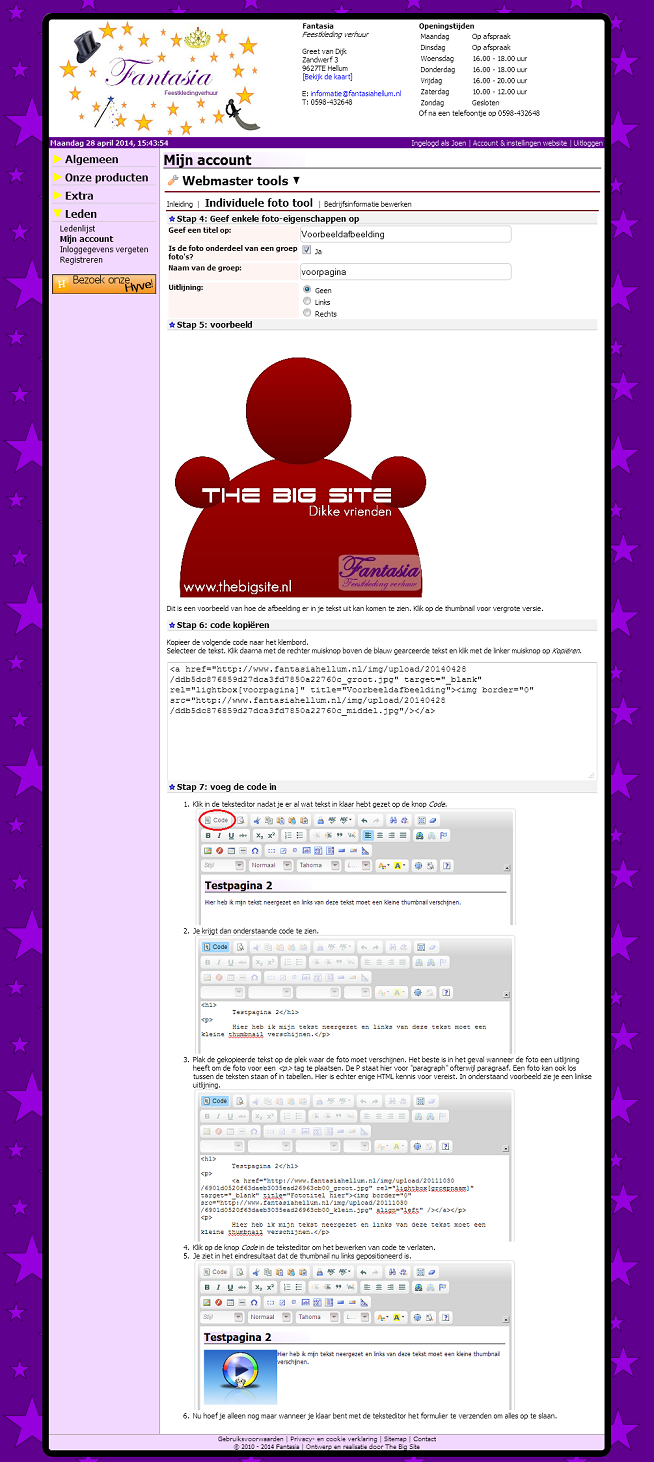De website is beknopt geworden en aangezien het beheer van foto's in de pagina-beheer module wat lastig te integreren zou zijn heb ik een hulpmiddel voor foto uploads gemaakt die automatisch een watermerk toevoegd en ook een stap voor stap instructie toont hoe de geüploade foto's in de pagina's ingevoegd kunnen worden.